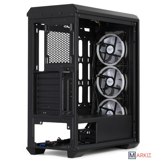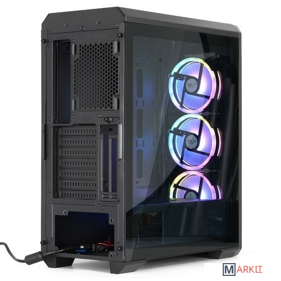 На базе данного корпуса можно собрать мощный системный блок для требовательных игр и графических программ. Большое количество мест для установки воздушных и жидкостных систем охлаждения, а так же отдельный бокс для ЖД и блока питания, позволяют эффективно охлаждать элементы системы при низком уровне шума. Левая панель из закалённого стекла и фронтальная решётка, позволят использовать элементы подсветки для красивого визуального эффекта.