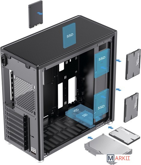 Конфигурация вентиляторов спереди:сверху: 2x120 или 2x140mmснизу: 3x120 или 2x140mmсзади: 1x120mm