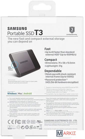 Markit » Внешние накопители (HDD и SSD) » Внешний накопитель Samsung Portable SSD T3 1TB [MU-PT1T0B]